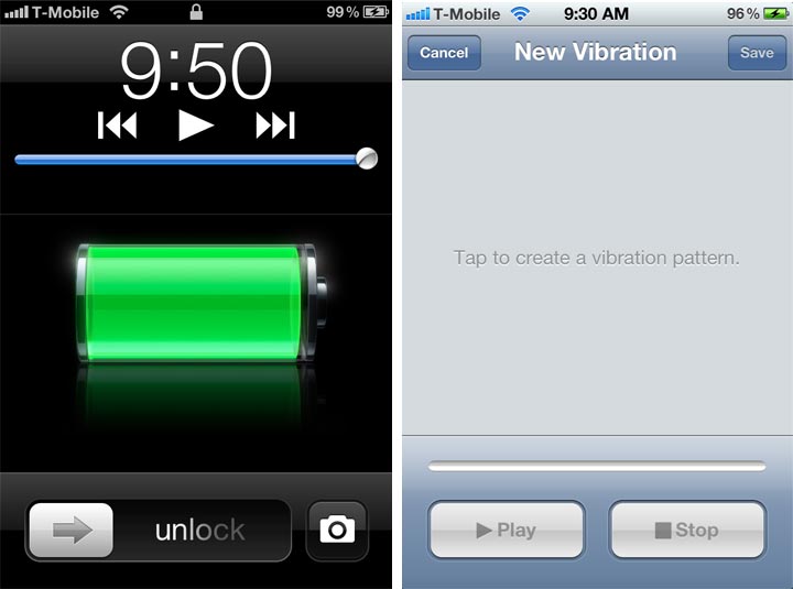 Two tricks in iOS 5: enable Camera app in lockscreen and Custom Vibrations